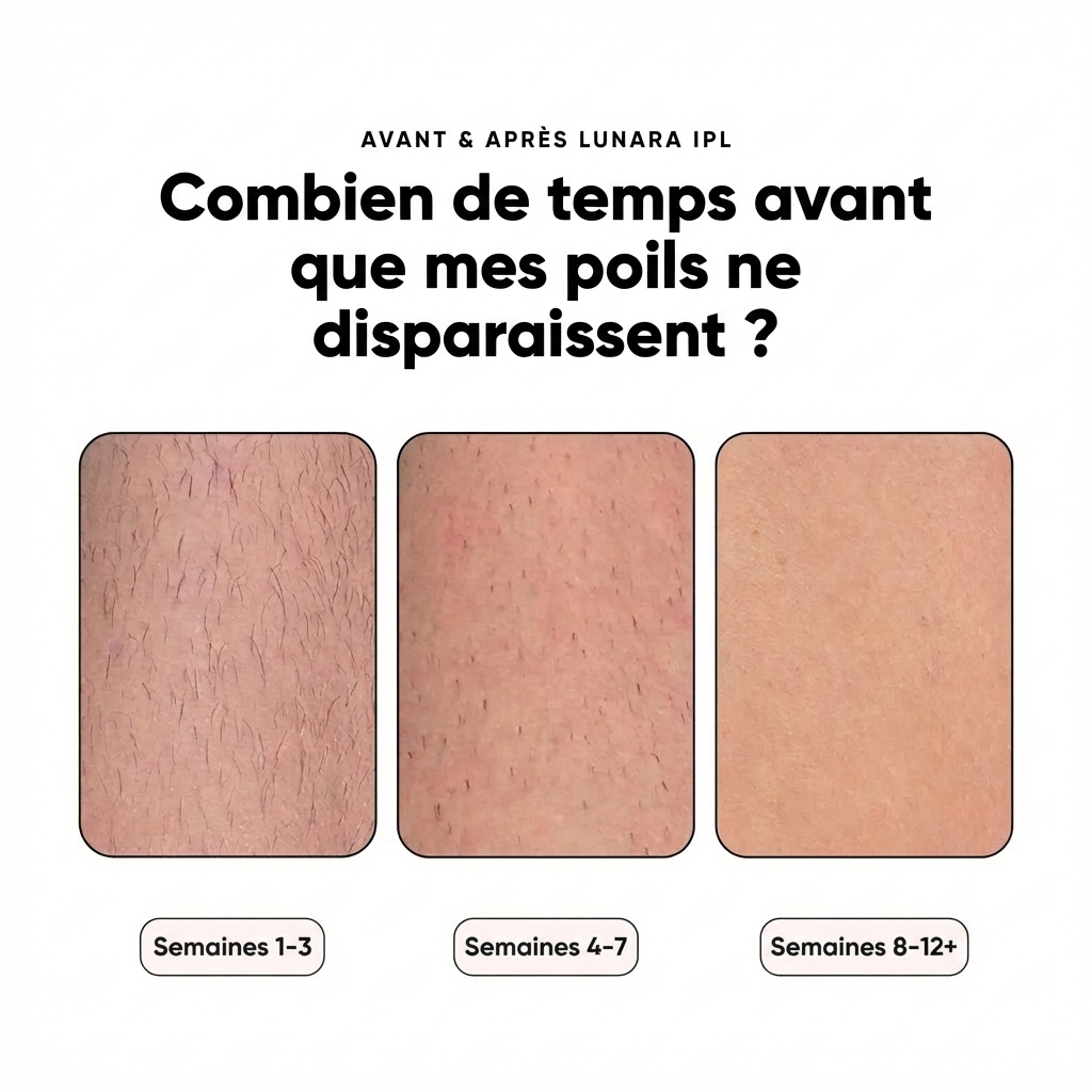 Des résultats visibles apparaissent dès 3 semaines. Pour une élimination complète et permanente, comptez entre 6 et 12 semaines d'utilisation régulière (2x par semaine).